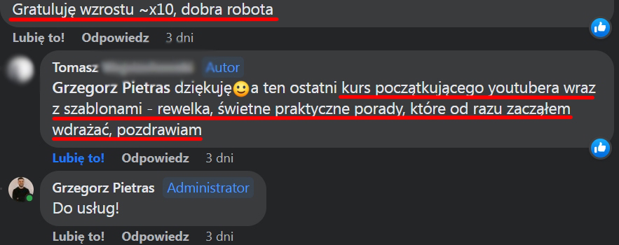 Wystarczyło wdrożyć kilka rzeczy z kursu, żeby natychmiast zobaczyć skok w statystykach. Polecam!