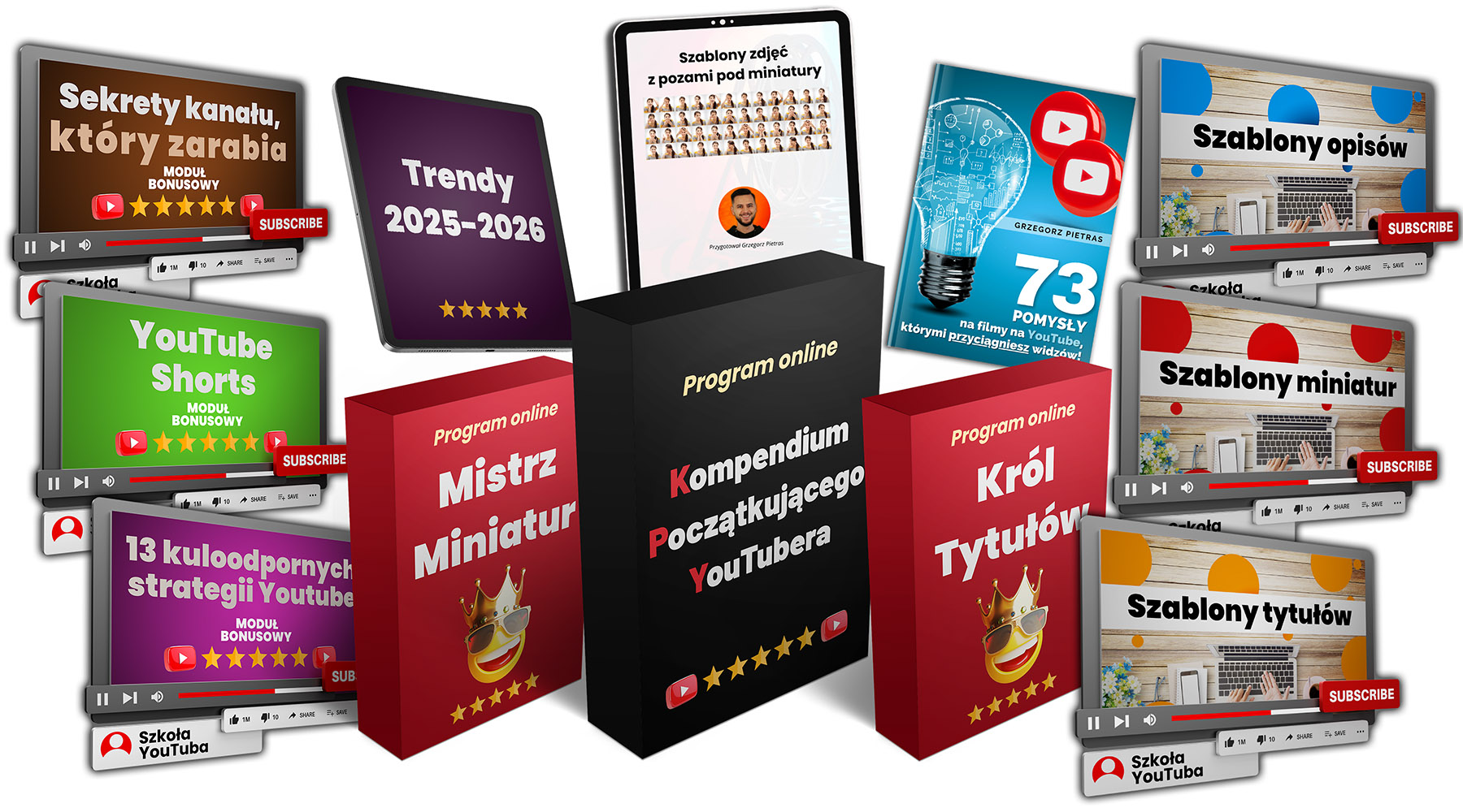 Otrzymasz plik ze sprawdzonymi i gotowymi projektami miniaturek oraz poradnikiem wideo.